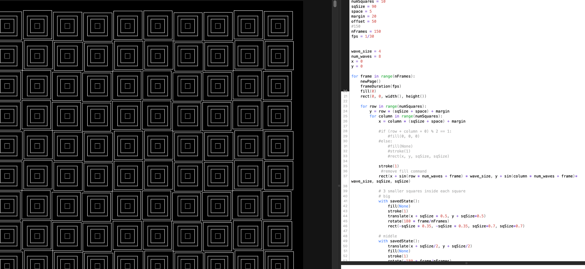 This animation was coded through Drawbot python. This was part of my creative coding class where I did choose a pattern to recreate using code.